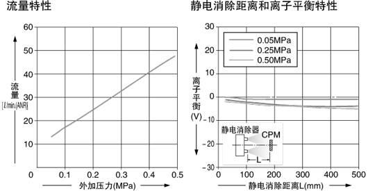 (注3):使用电源电压为24V、距离送风口前部300mm、外加压力为0.25MPa时的代表示例。